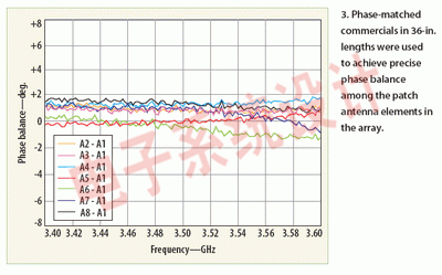 為最小化RF信號損耗并保持諸如相位和幅值等信號屬性,一般要將波束成型網絡緊挨著天線組件放置或將其整合進天線組件。在本例中,波束成型器被挨著天線放置并采用相位匹配電纜匹配跨接矩陣的相位(見圖2)。這些相位匹配電纜在期望的頻帶范圍提供±1deg.的相位匹配精度。每36英寸電纜長度貢獻的插入損耗小于0.5 dB。